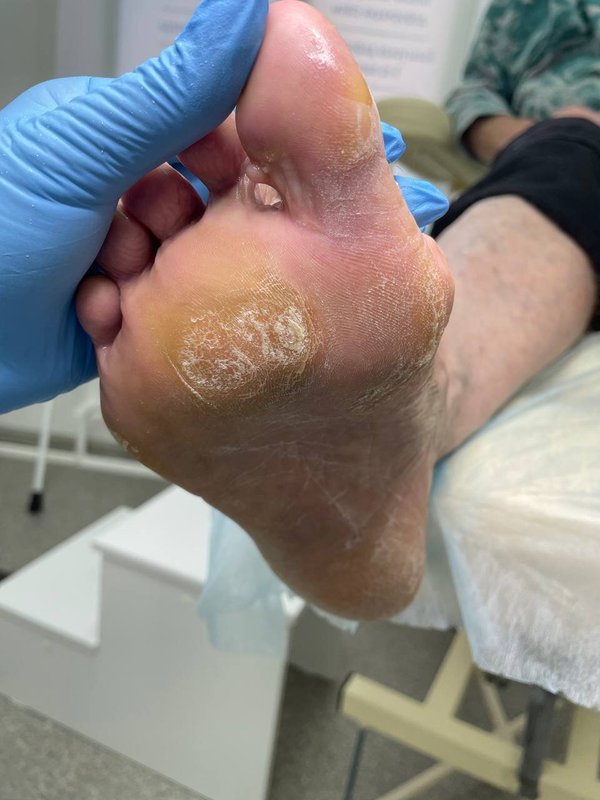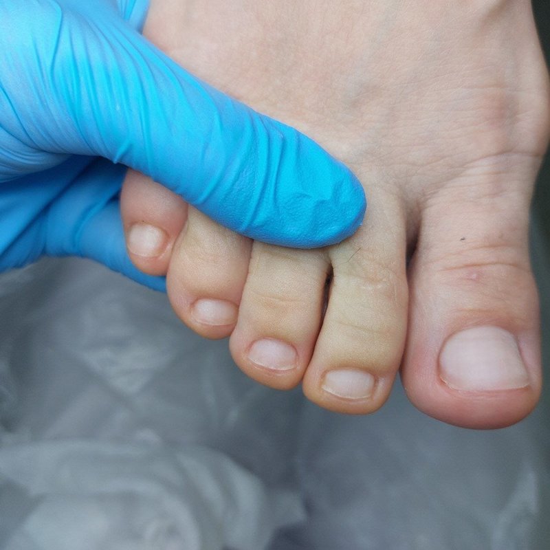 Бабушке быстренько сделали все необходимое! Ей очистили ногти как положено, а затем порекомендовали носить специальные приспособления между пальцами, посоветовали уход, а также через полгода прийти снова.